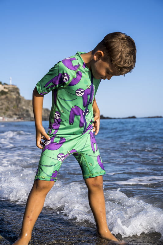 Your favorite beach hit – a one-piece zip-up swimsuit. A practical and comfortable piece of gear that provides protection from head to toe. Thanks to the stretchy fabric and high-quality YKK zipper on the belly, your child can easily put on and take off the swimsuit all by themselves!