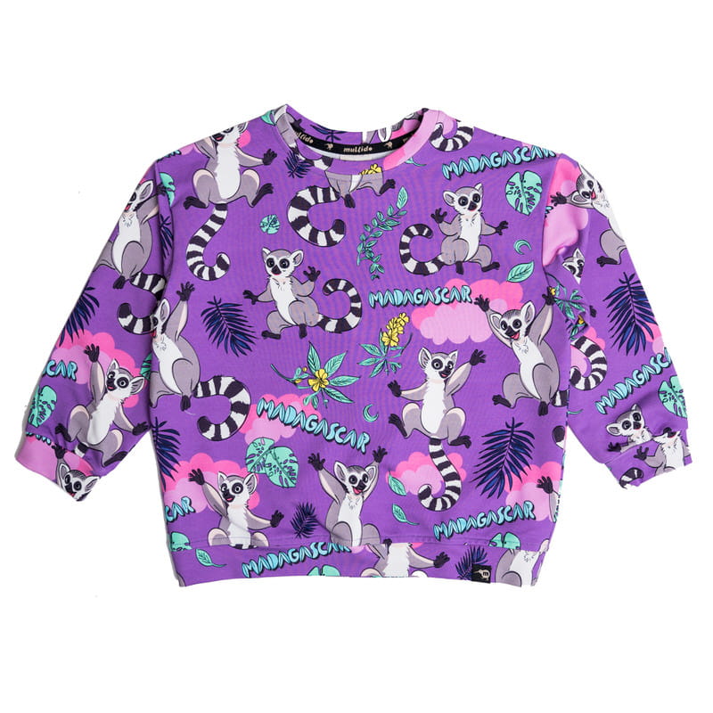 Bluza bez kaptura oversize Fioletowe Lemury