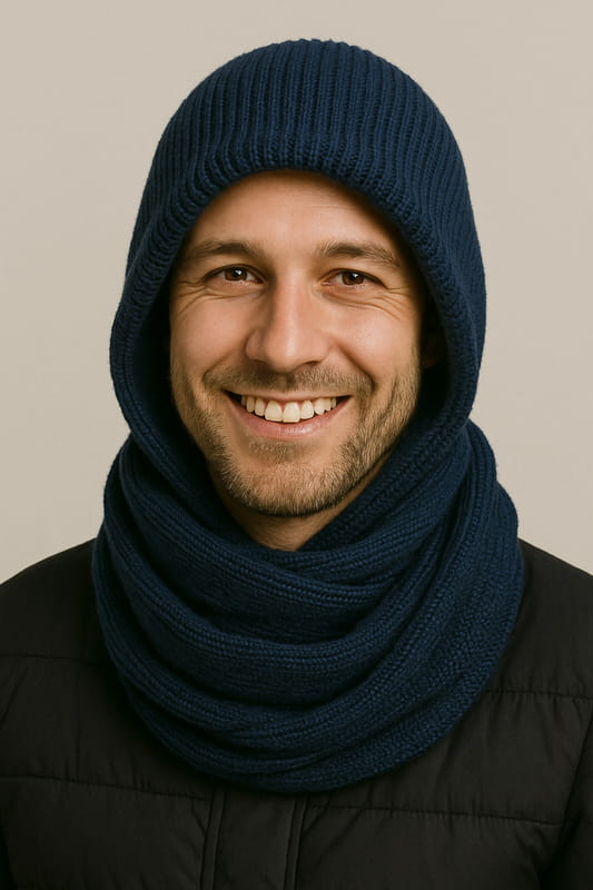 Kapturoszalik DLA DOROSŁYCH z wełny merino mulesing free. Połączenie kaptura z szalikiem - super wygodne i niezwykle praktyczne!