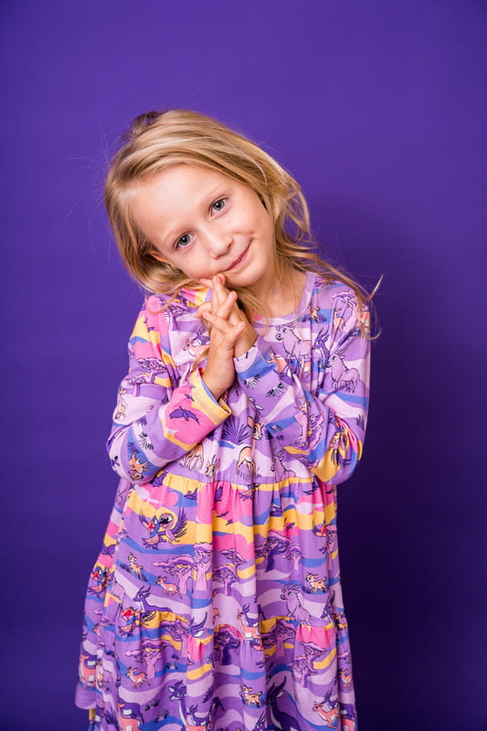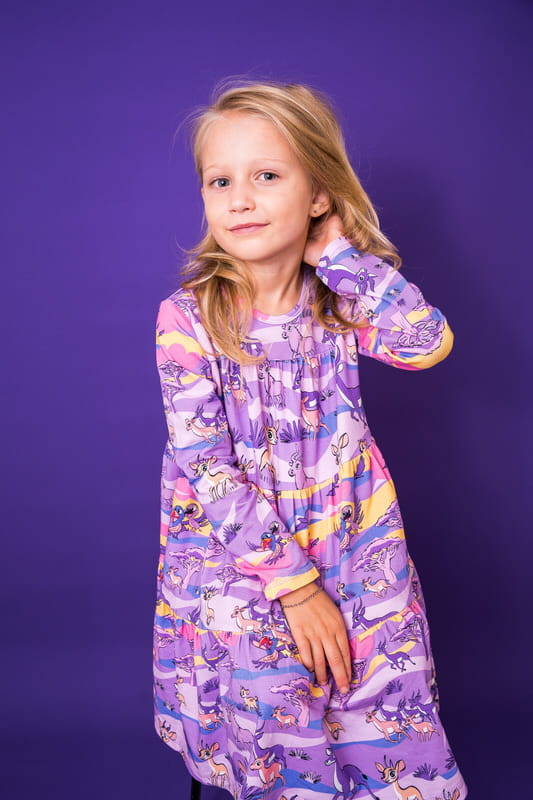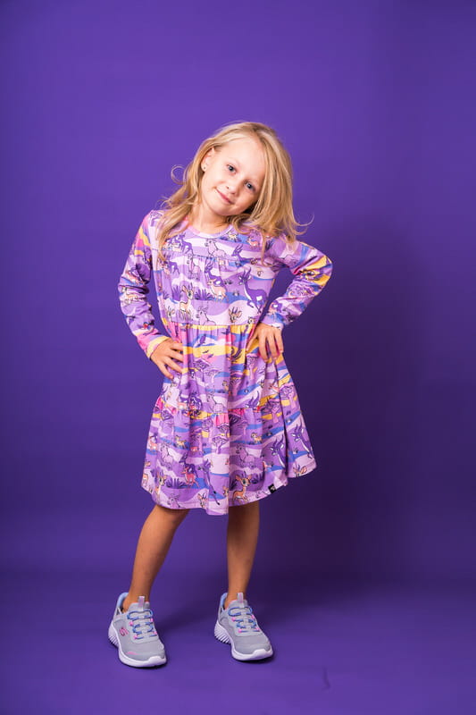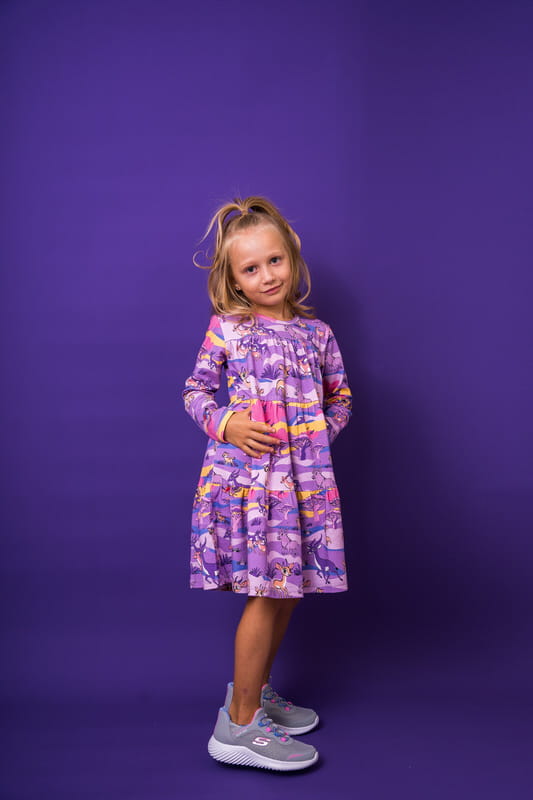 Sukienka A-line na długi rękaw Fioletowa Sawanna