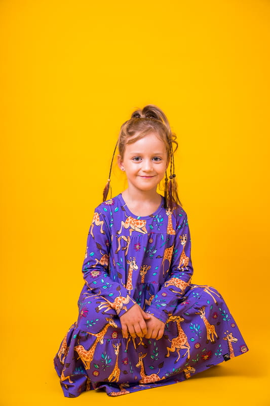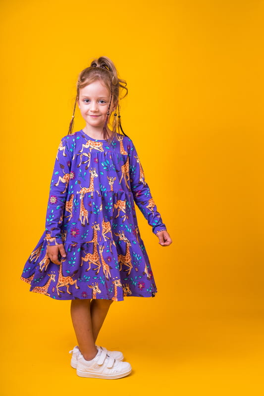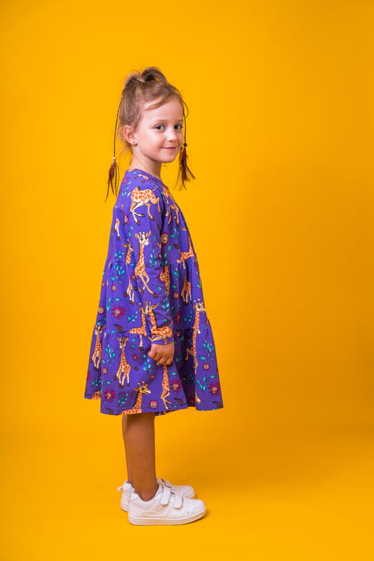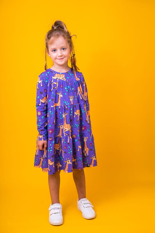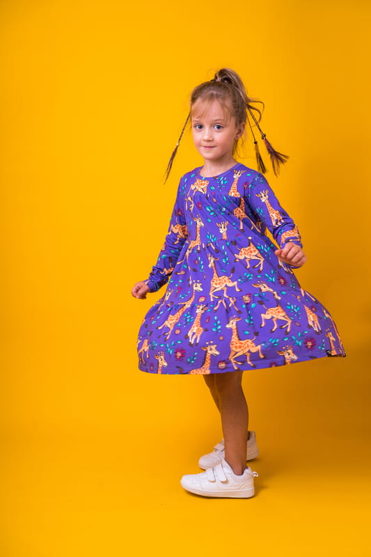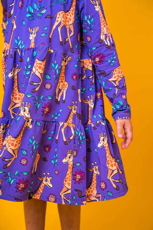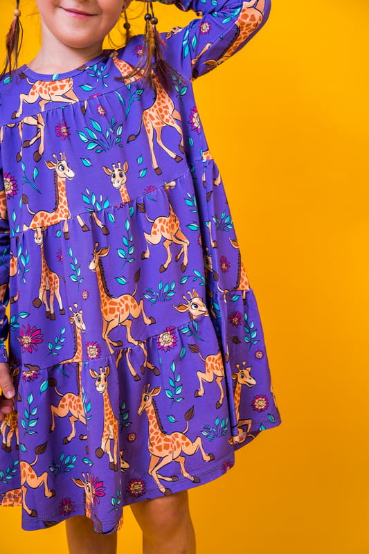 Sukienka A-line na długi rękaw Fioletowa Żyrafa