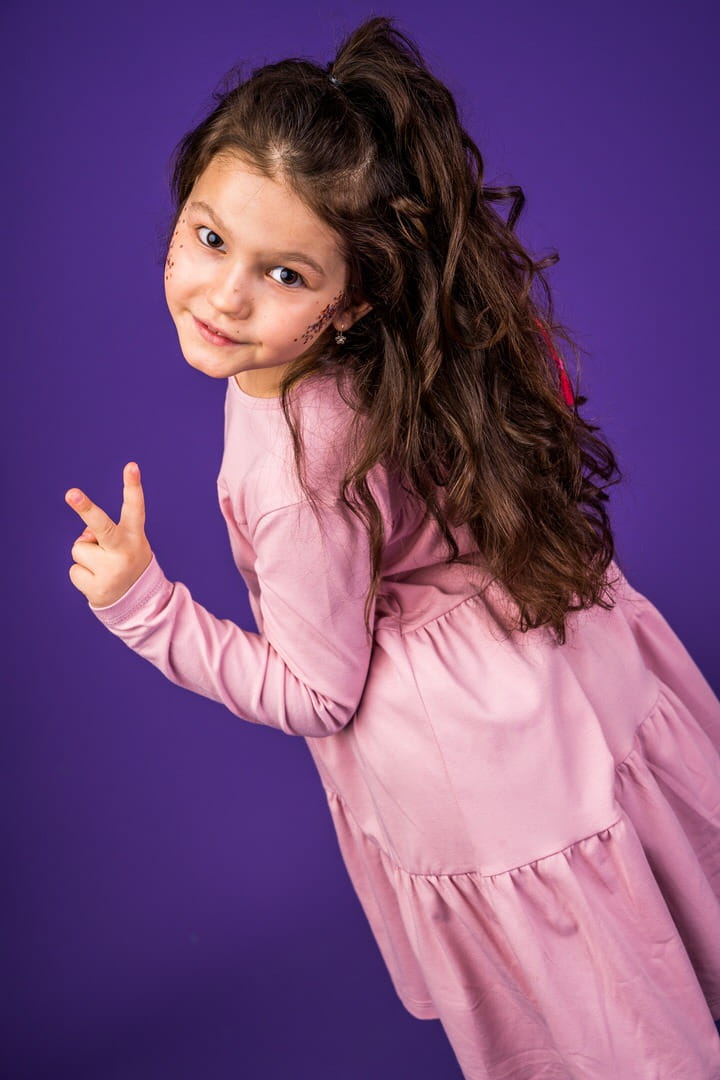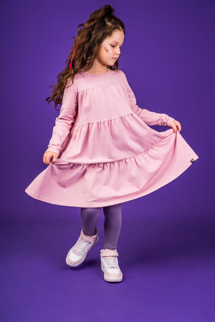 Oto sukienka z marszczeniami na każdą okazję. Świetnie sprawdzi się w szkole, przedszkolu i podczas wizyty u babci i dziadka. Idealnie pasuje do naszych legginsów!