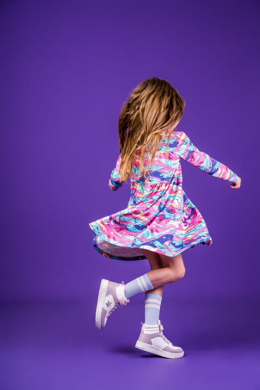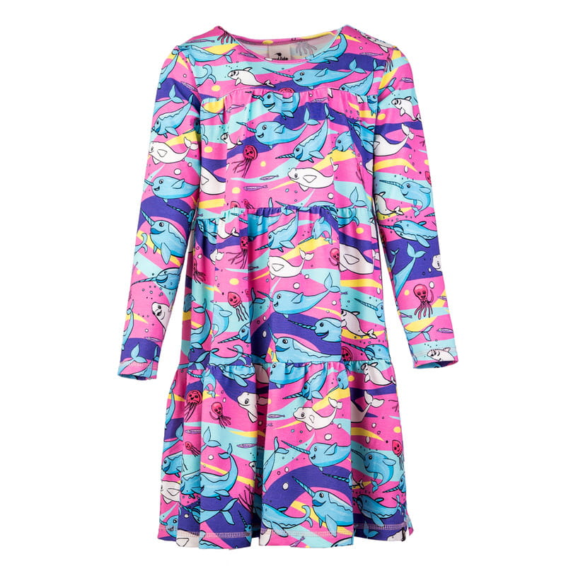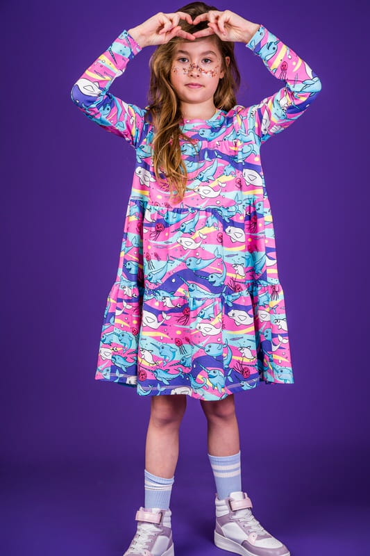Oto sukienka z marszczeniami na każdą okazję. Świetnie sprawdzi się w szkole, przedszkolu i podczas wizyty u babci i dziadka. Idealnie pasuje do naszych legginsów!