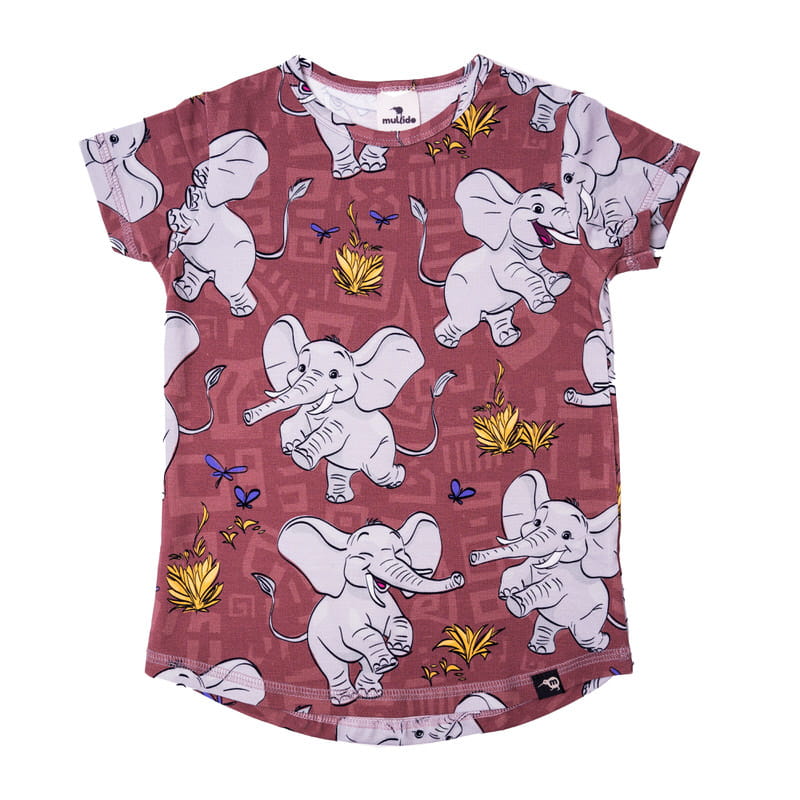 Absolutny must-have każdej dziecięcej szafy! Lekki i wygodny t-shirt, delikatnie zaokrąglony na dole i przedłużony z tyłu. Wykonany z elastycznego jerseyu. Idealny kompan naszych szortów, spodni i legginsów!