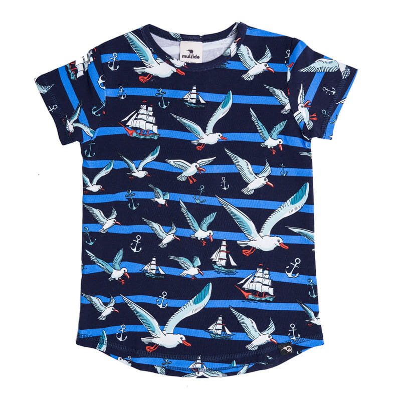 Absolutny must-have każdej dziecięcej szafy! Lekki i wygodny t-shirt, delikatnie zaokrąglony na dole i przedłużony z tyłu. Wykonany z elastycznego jerseyu. Idealny kompan naszych szortów, spodni i legginsów!