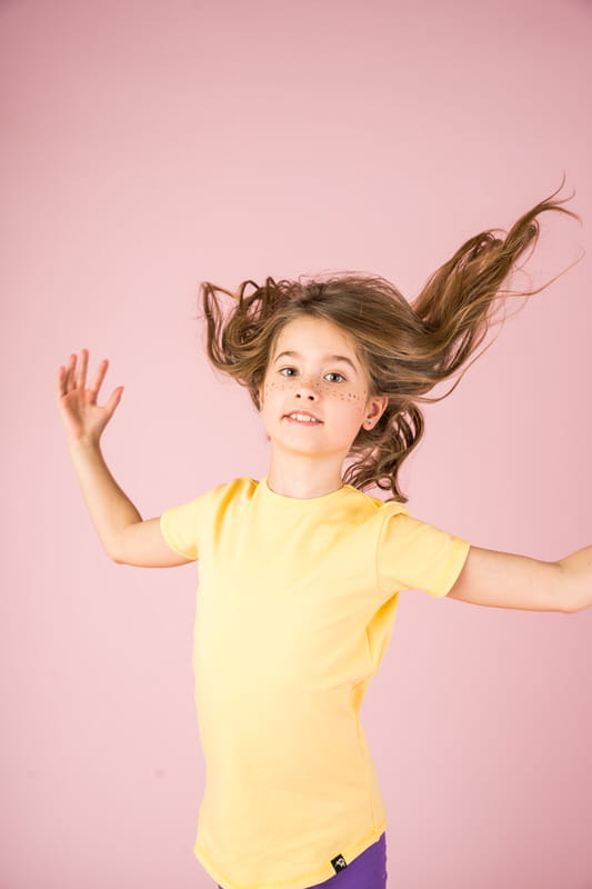 Jednokolorowy uniwersalny t-shirt na każdą okazję. Pozycja obowiązkowa na wiosnę i lato! Wygodny krój, delikatnie zaokrąglony na dole i przedłużony z tyłu. Znakomicie pasuje do naszych spodni i legginsów! Świetnie sprawdzi się w przedszkolu, szkole i na każdej wycieczce na plażę, pod namiot czy na działkę do dziadków!