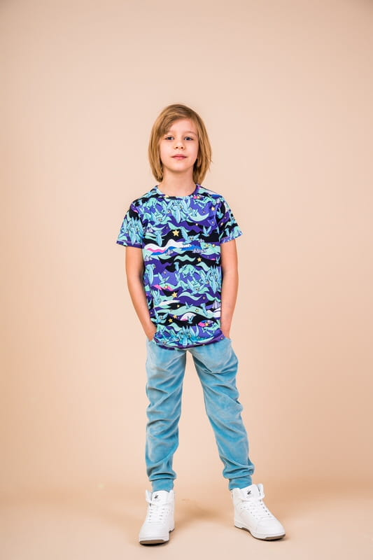 Absolutny must-have każdej dziecięcej szafy! Lekki i wygodny t-shirt, delikatnie zaokrąglony na dole i przedłużony z tyłu. Wykonany z elastycznego jerseyu. Idealny kompan naszych szortów, spodni i legginsów!
